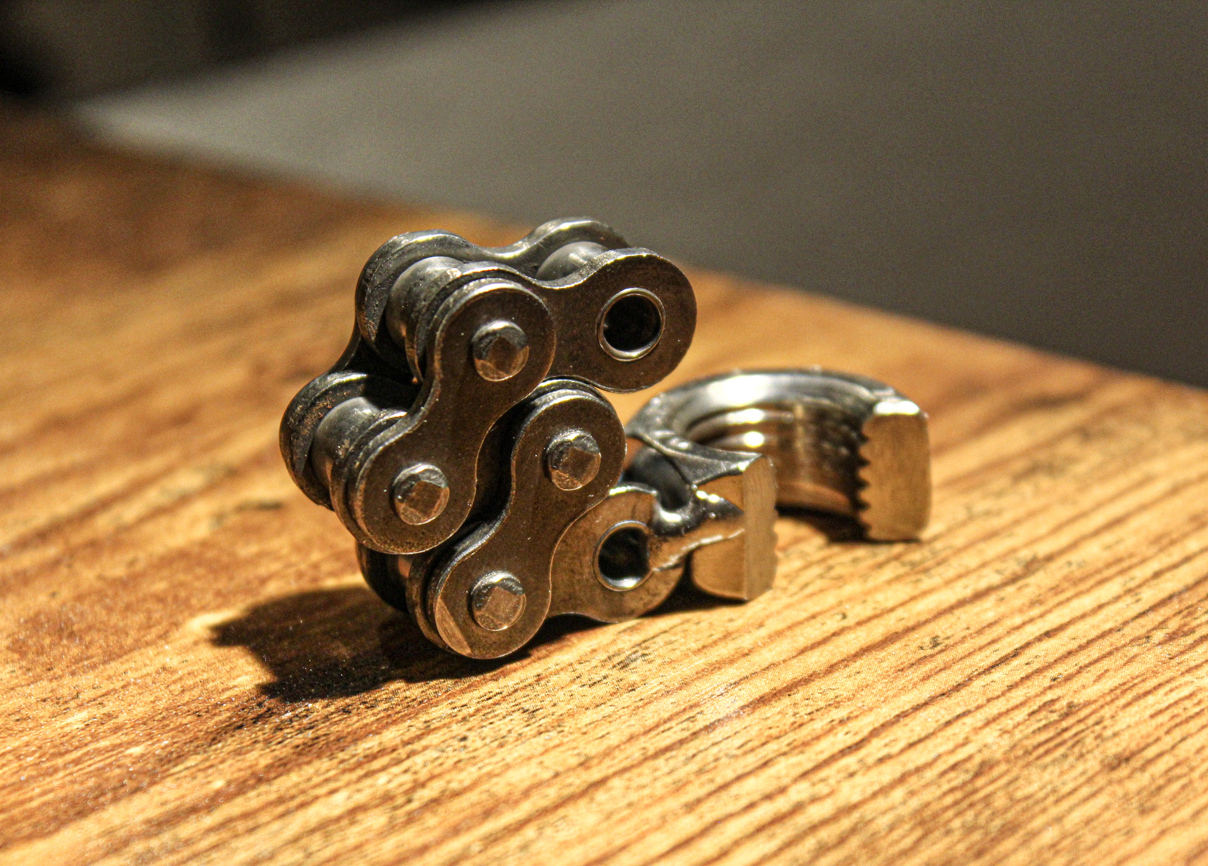Handgefertigte Schlüsselanhänger/Flaschenöffner aus Steuerketten gefertigt von Mortal Engines Interior Design.