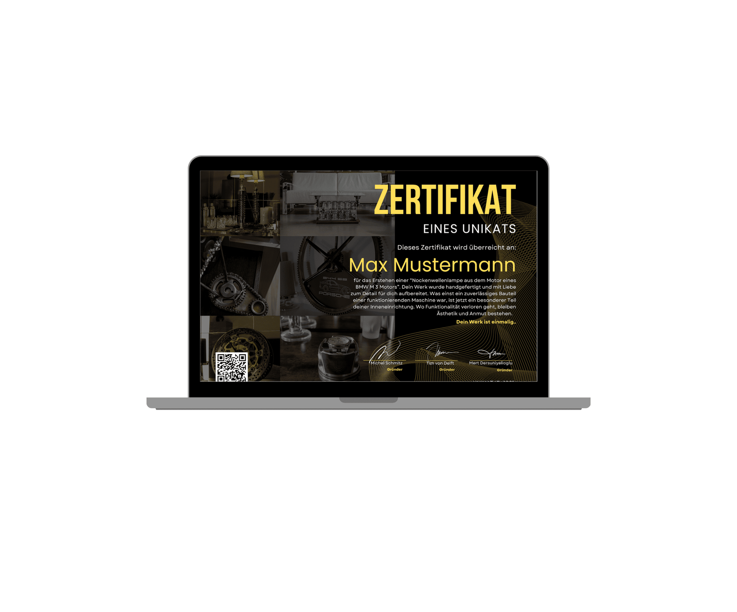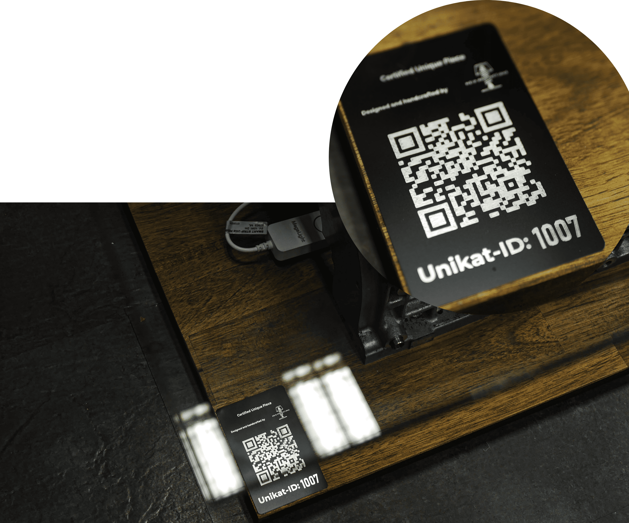 Dein Tisch wird auf deinen, oder einen von dir gewünschten Namen in unserer Datenbank abgespeichert und bekommt eine Unikat-ID zugewiesen. Ein zusätzliches Zertifikat senden wir dir per Mail zu.